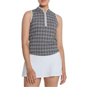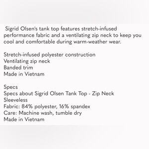 Excess. Sigrid Olsen's tank top features stretch-infused performance fabric and a ventilating zip neck to keep you cool and comfortable during warm-weather wear.