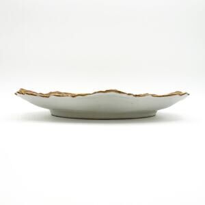 Nice antique French porcelain plate decorated with greenery and purple, lavender and pink thistles with all the main elements outlined in gold. The edge has a deep clouded / sponged gilding. Marked on the reverse Limoges AL France with an anchor. This mark was used by Alfred Lanternier in Limoges France between 1891 and 1914. The artist also marked their initials and the date 93 which indicates 1893.