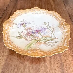 Lanternier Limoges Hand Painted Plate Thistles w AL Anchor Mark Antique 1893