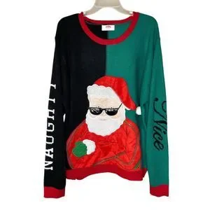 Ugly Christmas Gangsta Santa Claus Sweater 2XL Naughty or Nice Holiday