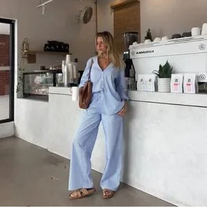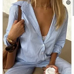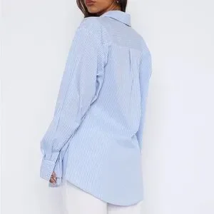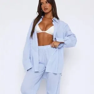 White Fox Boutique Always About Us Striped Button Up Shirt Light Blue Size S/M