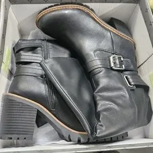 Sun + Stone Women's Viviaan Zip up Buckle Black Knee-High Boots Size 6.5 M