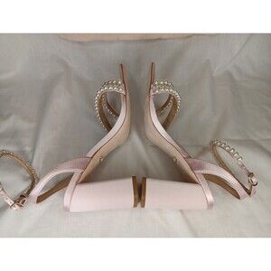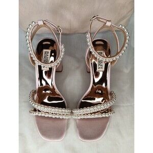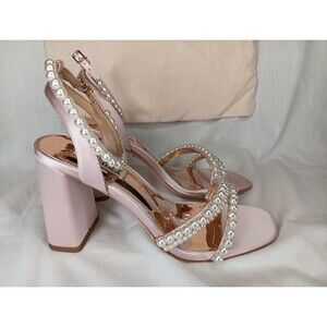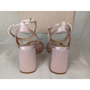 Badgley Mischka Feisty Pearl Block Heel Sandals Size 7 Pink Satin Wedding Prom