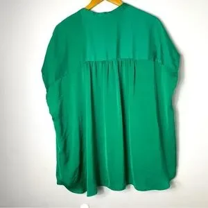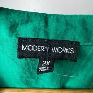 Modern Works short cap sleeves solid green top blouse 2X