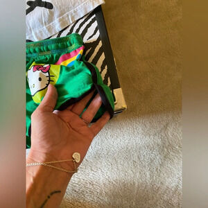Vintage from 2012 purchased from hot topic worn a few times only defect is printing came off tops tag other than that itโs in excellent condition and a complete set. Size small super cute rainbow stitching on shorts. Itโs wrinkled from storage in my hello kitty collection.
