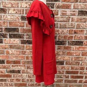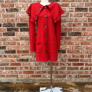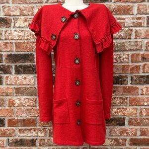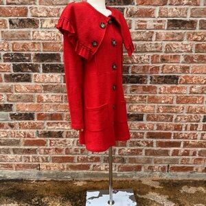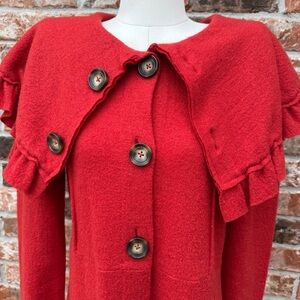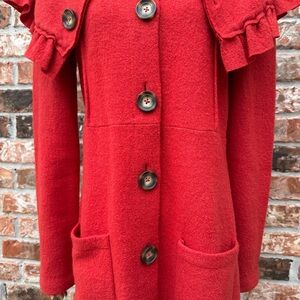 Gorgeous orange 100% wool HWR (Anthropologie) coat is warm and stylish with cute ruffles on the collar!