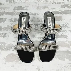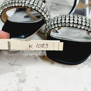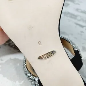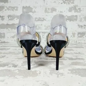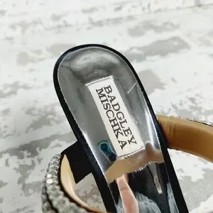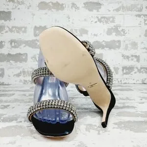 New Badgley Mischka Sade Black Rhinestone Strap Heeled Sandals K1023