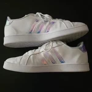 Adidas Grand Court Sneakers White w/Iridescent Stripes