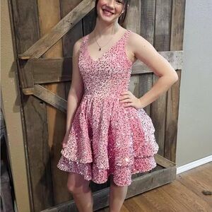 Short Blue Homecoming Dress, Tiered Ball Gown, Prom, Cocktail, Party Gown