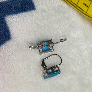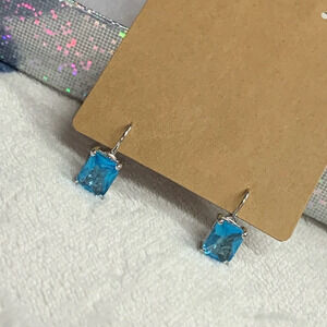 Silver Tone Blue Rectangle Gemstone Lever Back Earrings