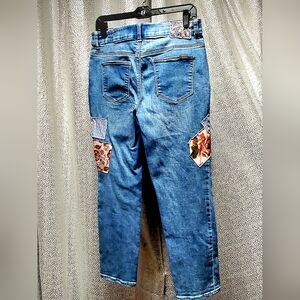 Rose patchwork cropped Jeans by Chino's. Size 8P. See photos for measurements. Excellent Pre-owned Condition from a smoke and pet free home.