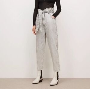 AllSaints Sammy High Rise Paperbag Jeans Gray 100% Cotton US Size 6
