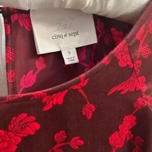 Beautiful red-on-red floral 100% silk top. Great to wear for the holidays! Dress up with a skirt or slacks, or wear with your jeans to level up a casual look.