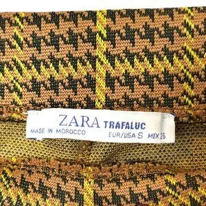 Zara Tan & Mustard Houndstooth Stretchy Crop Pants