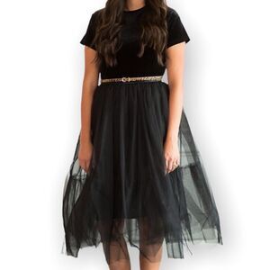 Junie Blake Black Velvet Dress With Black Tulle Skirt