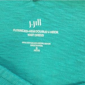 J Jill Flounced Hem Double V Neck Knit Dress SP Small Petite Aegean Teal Casual.