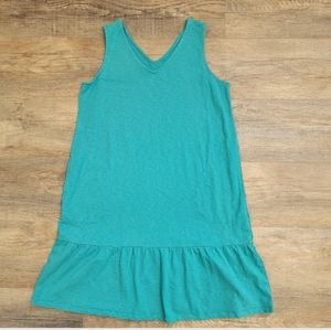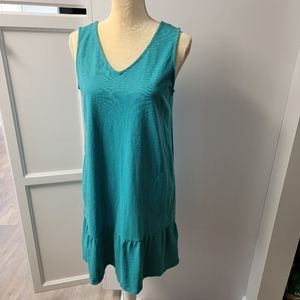 J Jill Flounced Hem Double V Neck Knit Dress SP Small Petite Aegean Teal Casual