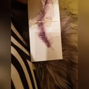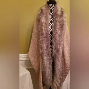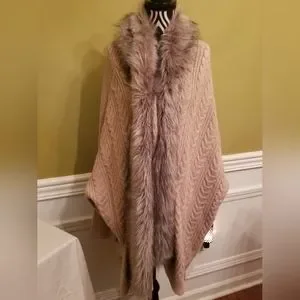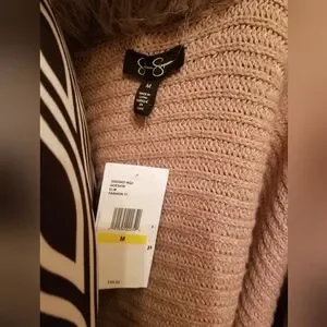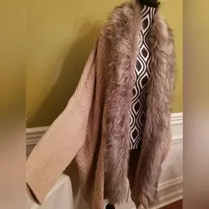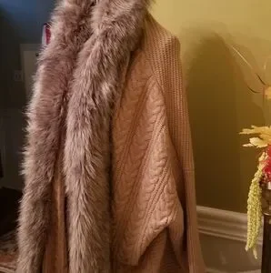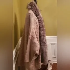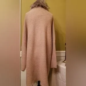 NEW Jessica Simpson Knit Sweater Cardigan With Faux Fur Trim Tan Oversize Medium