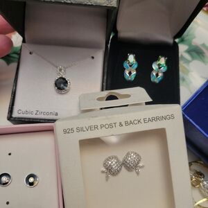 Lot 4 17 piece Silver 925 sterling necklace earring bracelet bundle lot