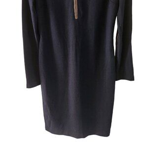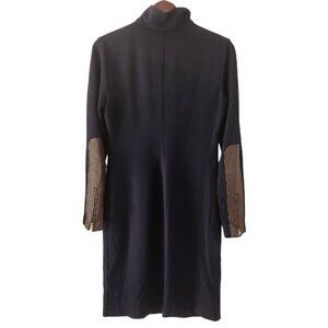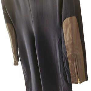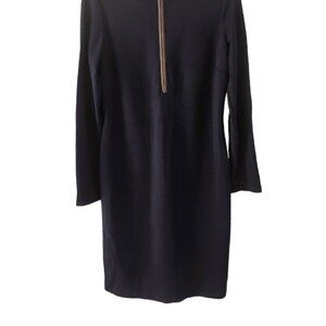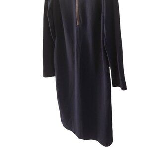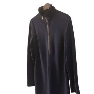 Ralph Lauren Mock Neck Navy Blue Dress Long Sleeve Lamb Leather Trim Half Zip 8