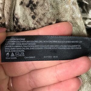 Rectangular infinity scarf. Animal snakeskin print. One side is Gold, Brown and bronze. Has metallic gold scale detailing. The other side is gray and taupe. ✨