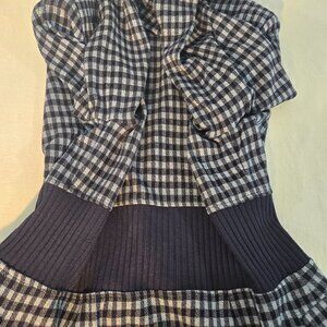 CAbi The Explorer Check Up Light Blue Navy Blue Heritage Gingham Plaid Print Equestrian Wide Ribbed Waistband Stretch Knit Blazer Jacket Size M