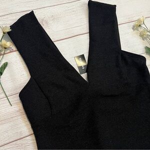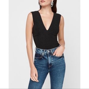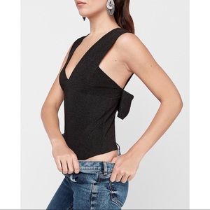 EXPRESS Ribbed Plunge Neck Bow Back Thong Bodysuit
