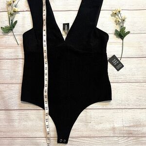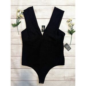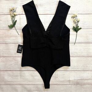 Express Ribbed Plunge Neck Bow Back Thong Bodysuit