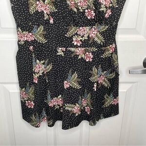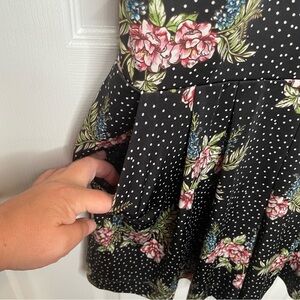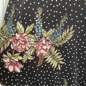 -Black and white polka dot print with floral details