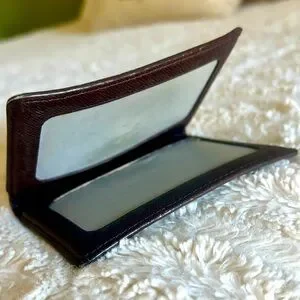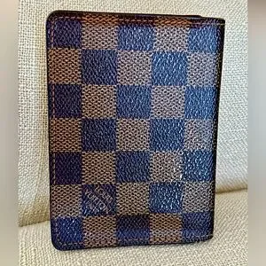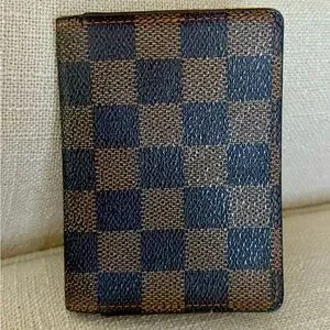 This card holder features a damier ebene canvas and an interior slip compartments.