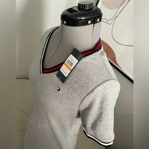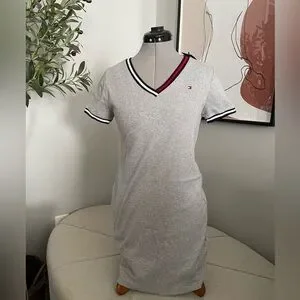 TOMMY Hilfiger Women's Gray 100% V Neck, Cotton Knit Tee Shirt Dress New Size Small