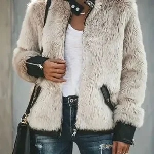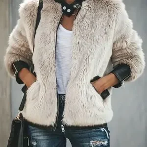Women's Faux Fur Jacket - Beige