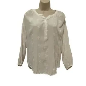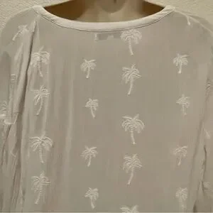Z Supply White Button Up Blouse Top Embroidered Palm Trees Size Small
