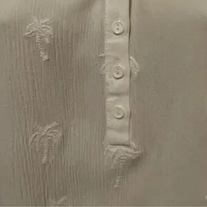 Z Supply White Button Up Blouse Top Embroidered Palm Trees
