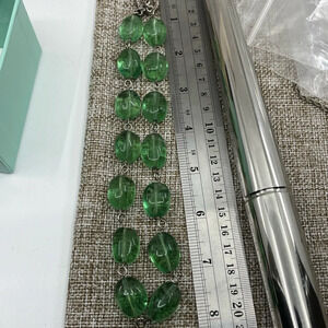 Vibrant green stones, likely glass or green quartz, set in sterling silver.