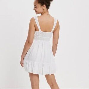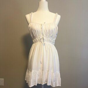 Adorable White Ruffle Hem Tie-Front Sundress American Eagle Outfitters