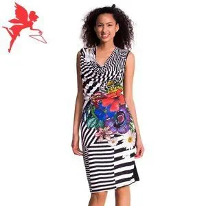 DESIGUAL Sara Sleeveless Cowl Neck Ruched Stripe and Floral Dress