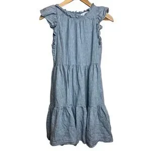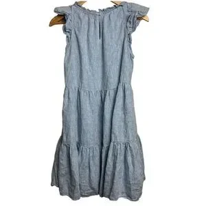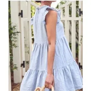 NWOT LAKE Dress Women XS Blue Linen Helen Tiered Ruffle Sundress Pocket Mini