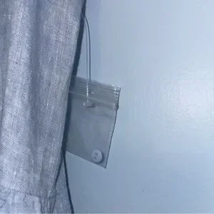 No tags but spare button package is attached. Approximate measurements