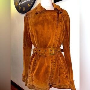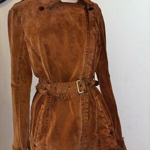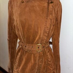 Anthropologie Everyday Moto Jacket Womens Medium Cognac Asymmetrical Zip Belt