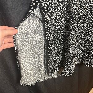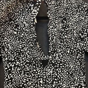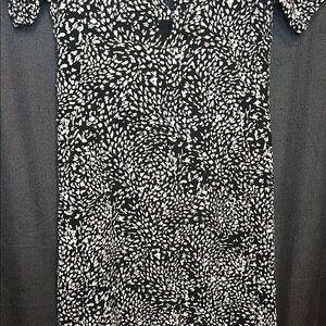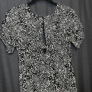 Gorgeous Free People Dress. Size 4. Black & white with short sleeves. This dress has a v style neck and an eyelet opening in the back. Slits on the side and buttons going down one side. So beautiful and comfortable. Great for any occasion. See photos for measurements. EUC.