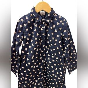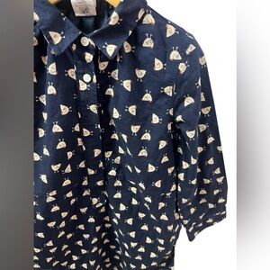 Crewcuts navy blue long sleeves dress with chicken prints dress