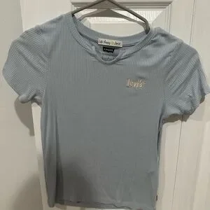 Elevate your casual wardrobe with this Levi's light blue ribbed top. Perfect for everyday wear, it offers comfort and style in one.