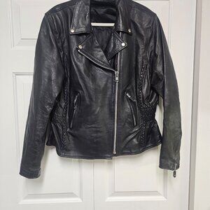 Womens fitted leather jacket with "lady Harley" patch on back