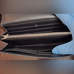 Silvertone & Goldtone hardware, multiple card slots, one inside zip pocket,