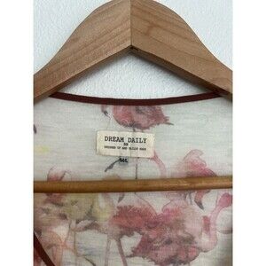Anthropologie Watercolor Pink Flamingo Dolman Sheer Short Sleeve Top M/L Artsy