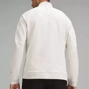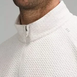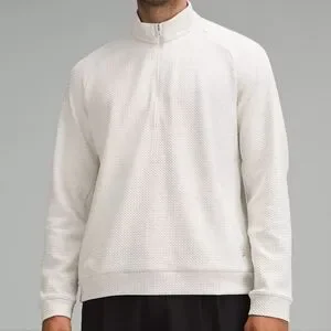 Lululemon Men's Double-Knit Cotton Half Zip- Heathered Bone White Grayish Large