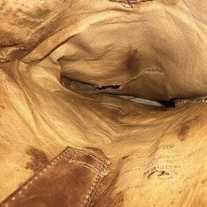 • distressed inner, left boot has torn lining