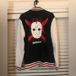 BARELY WORN (Only about 1 or 2 times) Mens Black & White Friday the 13th Movie Themed Letterman Jacket from Spirit Halloween. INTERNET PAYMENT (Apple Pay, Facebook Pay, etc.) NOT ACCEPTED.