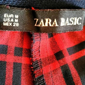 Zara Basic, red with black square pant, Medium, in excellent condition, length = 37", inseam = 27"